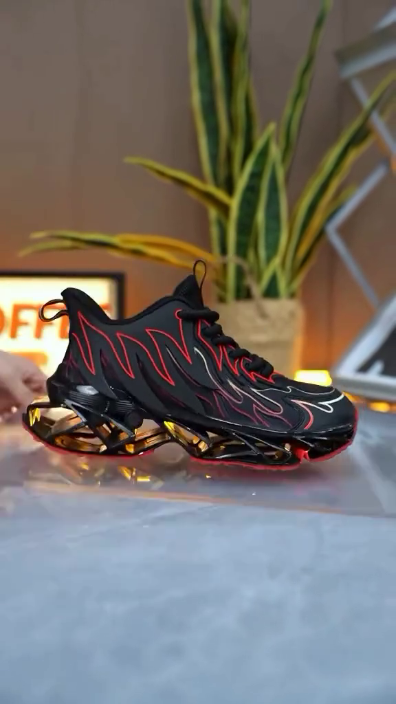 The highlight of the BladeX™ Sneakers is the futuristic hollow air-cushion sole system ⚙️✨. Designed for superior shock absorption, it reduces impact on your feet and provides a smooth, responsive walking experience. The elevated sole structure not only enhances comfort but also gives the shoe a bold, tech-inspired look that sets it apart from ordinary sneakers 🚀.