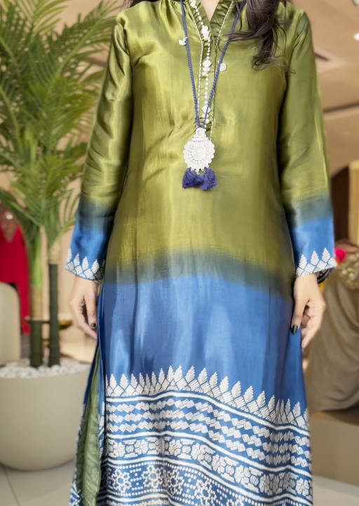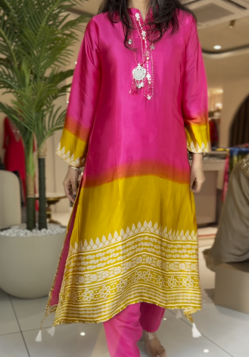Gajji silk is known for its smooth texture, subtle sheen, and rich feel. The fabric drapes beautifully, enhancing your silhouette while offering breathable comfort throughout the day. Designed for the modern woman who values tradition, this kurta pant set combines intricate detailing with refined tailoring to create a look that is both elegant and versatile.