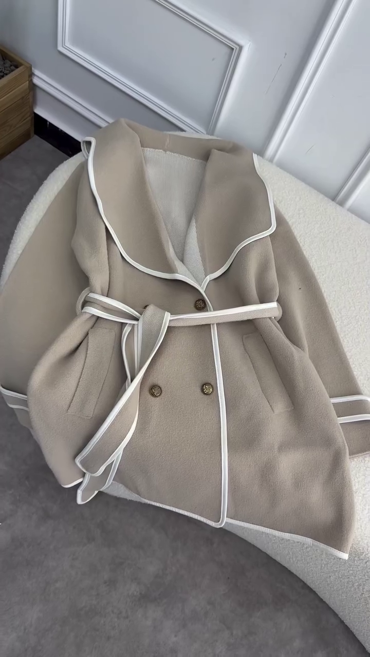 Overall, this coat combines elegance, practicality, and versatility, making it an essential piece for any woman’s wardrobe. With its tailored double-breasted design, neutral color, and high-quality construction, the Beige Double-Breasted Women’s Coat is perfect for anyone looking to elevate their outerwear collection while staying warm and stylish.
