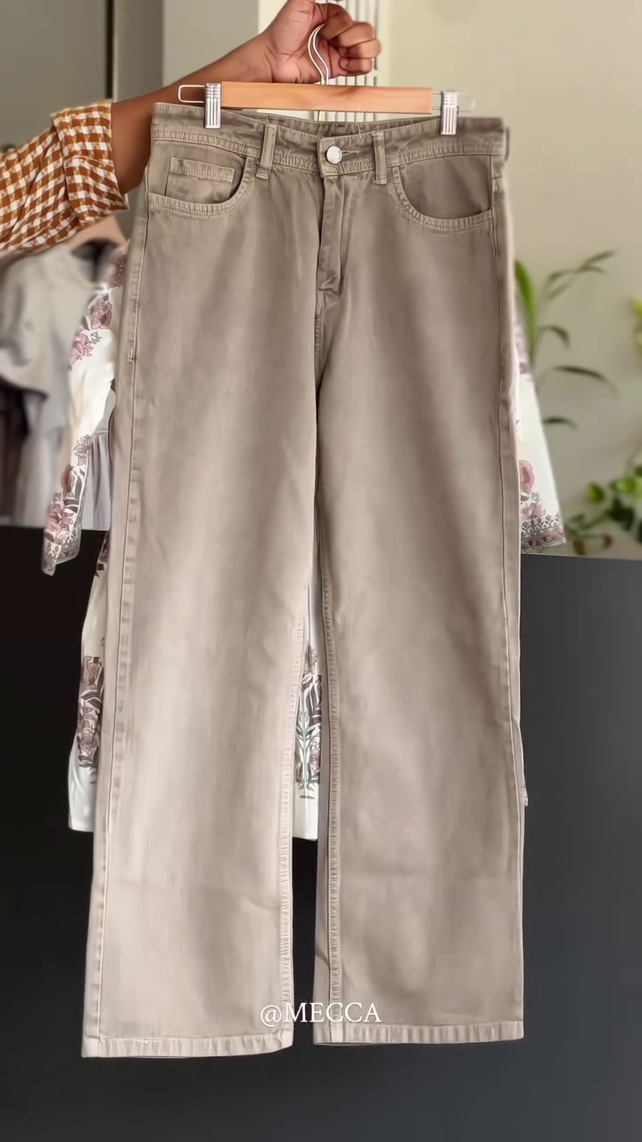 Paired with earthy brown denims, the outfit exudes grounded sophistication. The color balance between the soft florals and the neutral bottom makes it perfect for everything from art gallery visits to evening dinners.