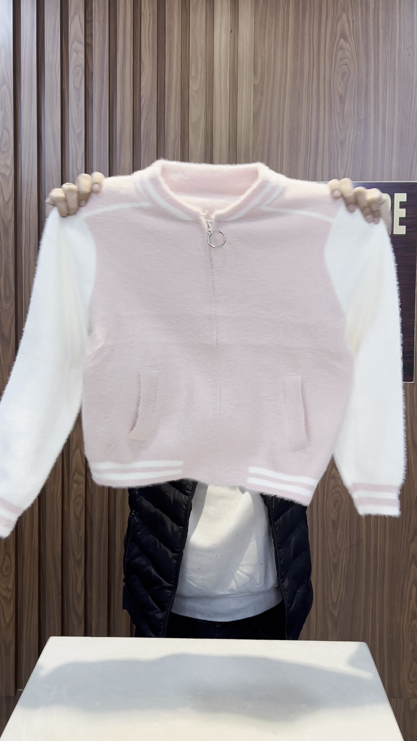 Crafted from a luxuriously soft, fuzzy knit fabric, this bomber jacket feels incredibly gentle on the skin while keeping you warm and comfortable during cooler days ❄️. The fabric has a plush, cloud-like finish that instantly elevates your outfit and gives it a premium, cozy look you’ll love wearing again and again.