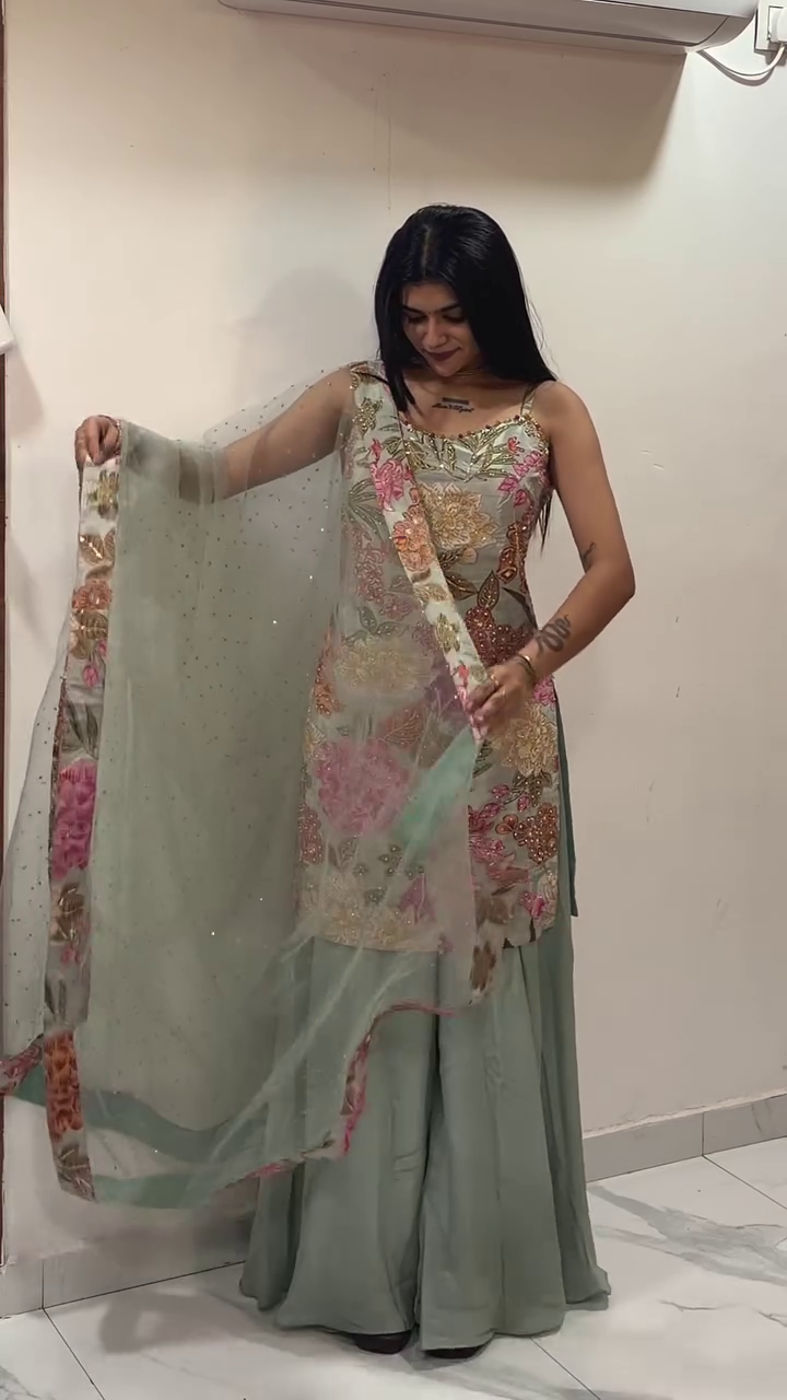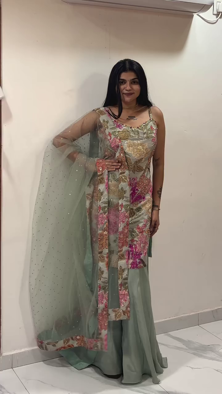 Ideal for weddings, festive parties, mehndi functions, engagements, and special celebrations, the Mint Blossom Sharara Suit also makes a thoughtful gift for loved ones who appreciate elegant ethnic wear ๐ŸŽ๐Ÿ’.