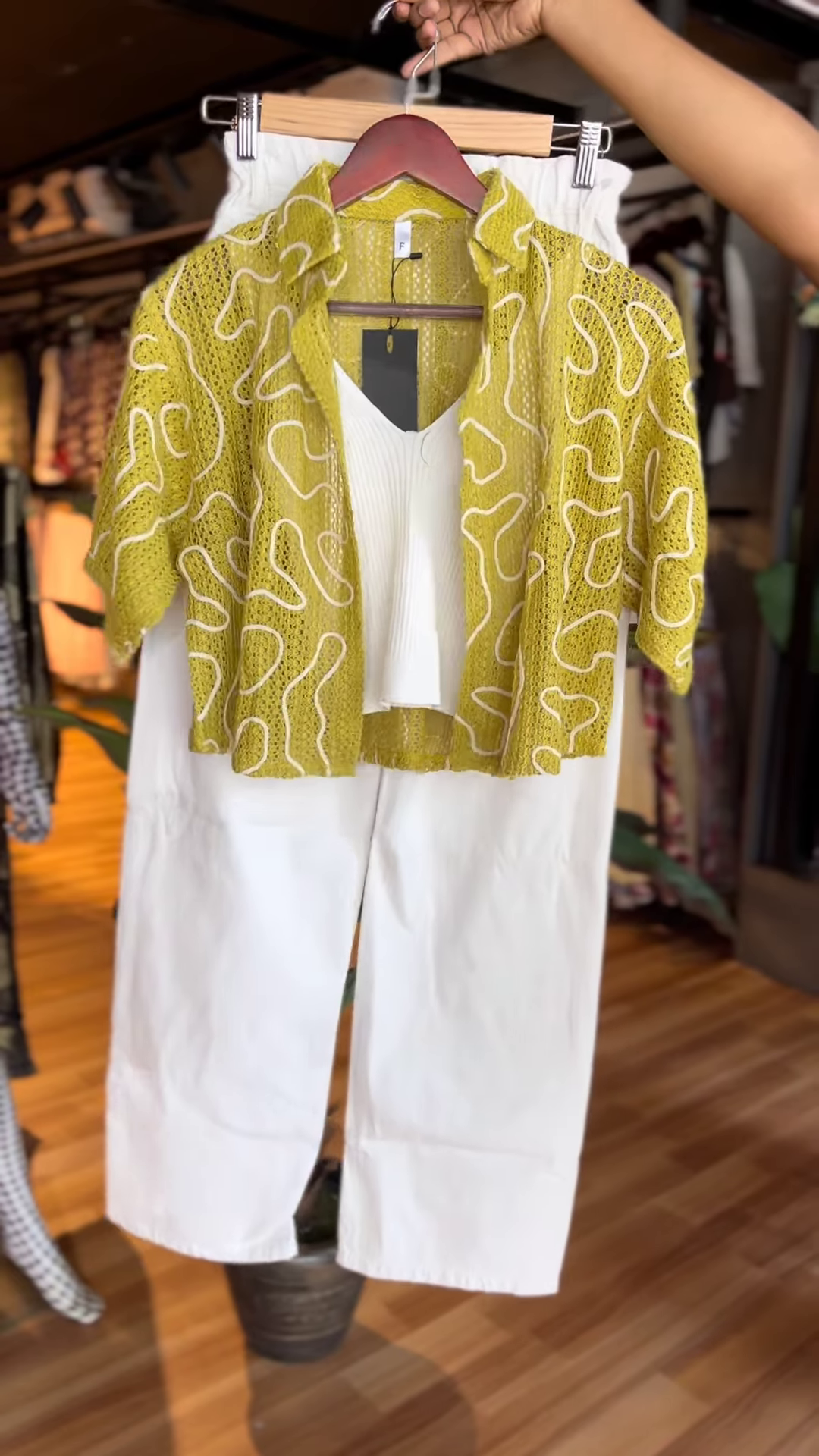 Add a burst of freshness to your day with this citron green see-through shirt that screams vacay energy. Paired with a soft white inner and flowy wide-leg trousers, itβs the ultimate look for when you want to feel light, playful, and still oh-so-put-together.