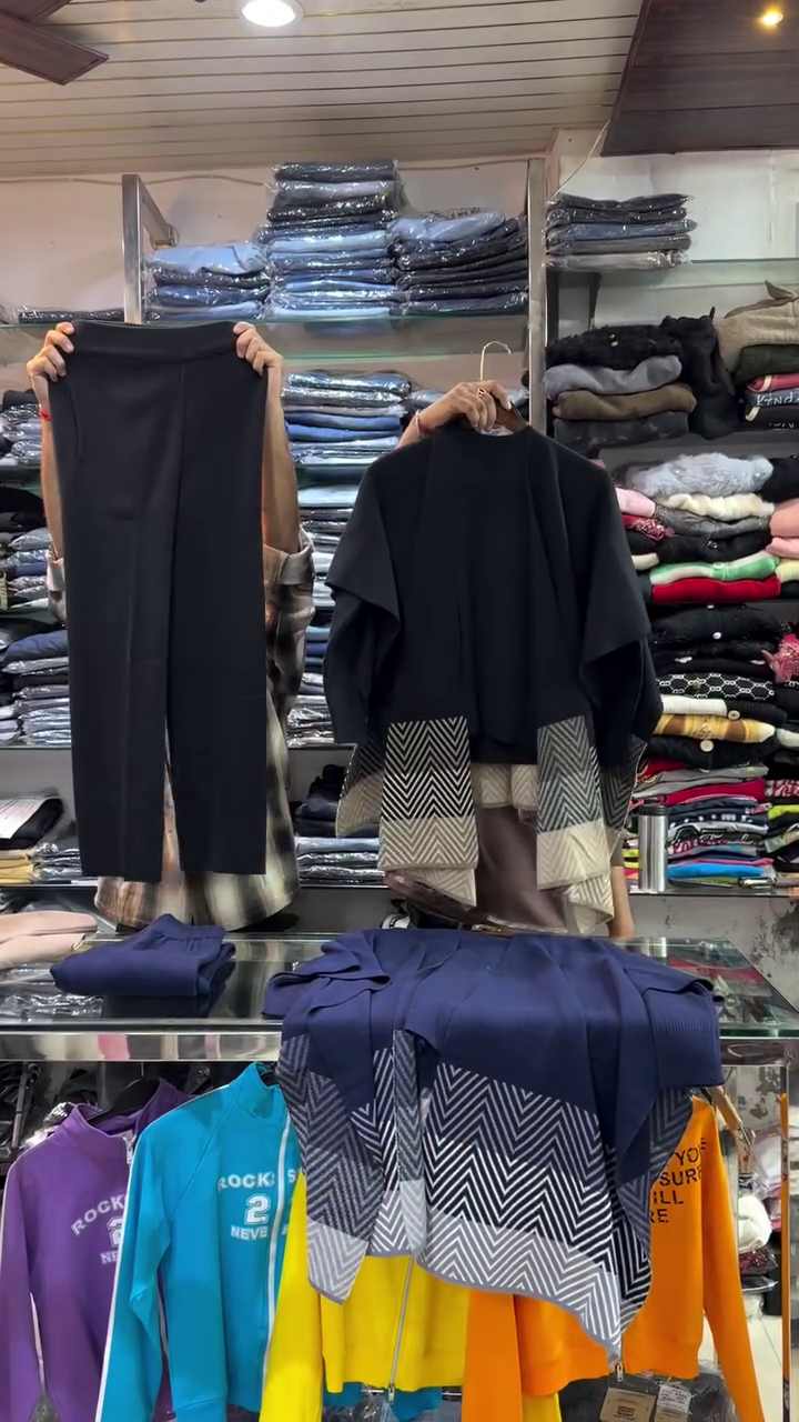 👑 “Urban Elegance Taupe Chevron Knit Sophisticated Co-ord Set with Draped Cape Cardigan and Sleek Pants for Effortless Day-to-Night Style” 👑