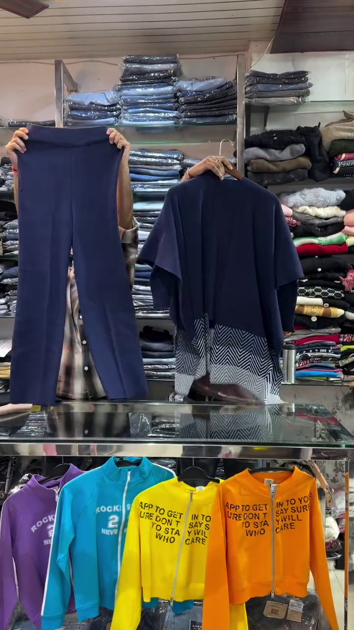 Matching straight pants with flexible waistband for all-day comfort 👖