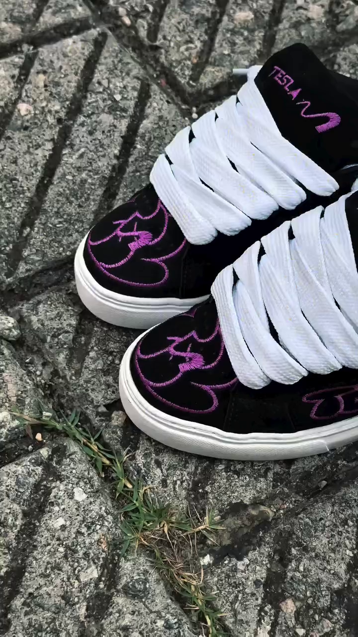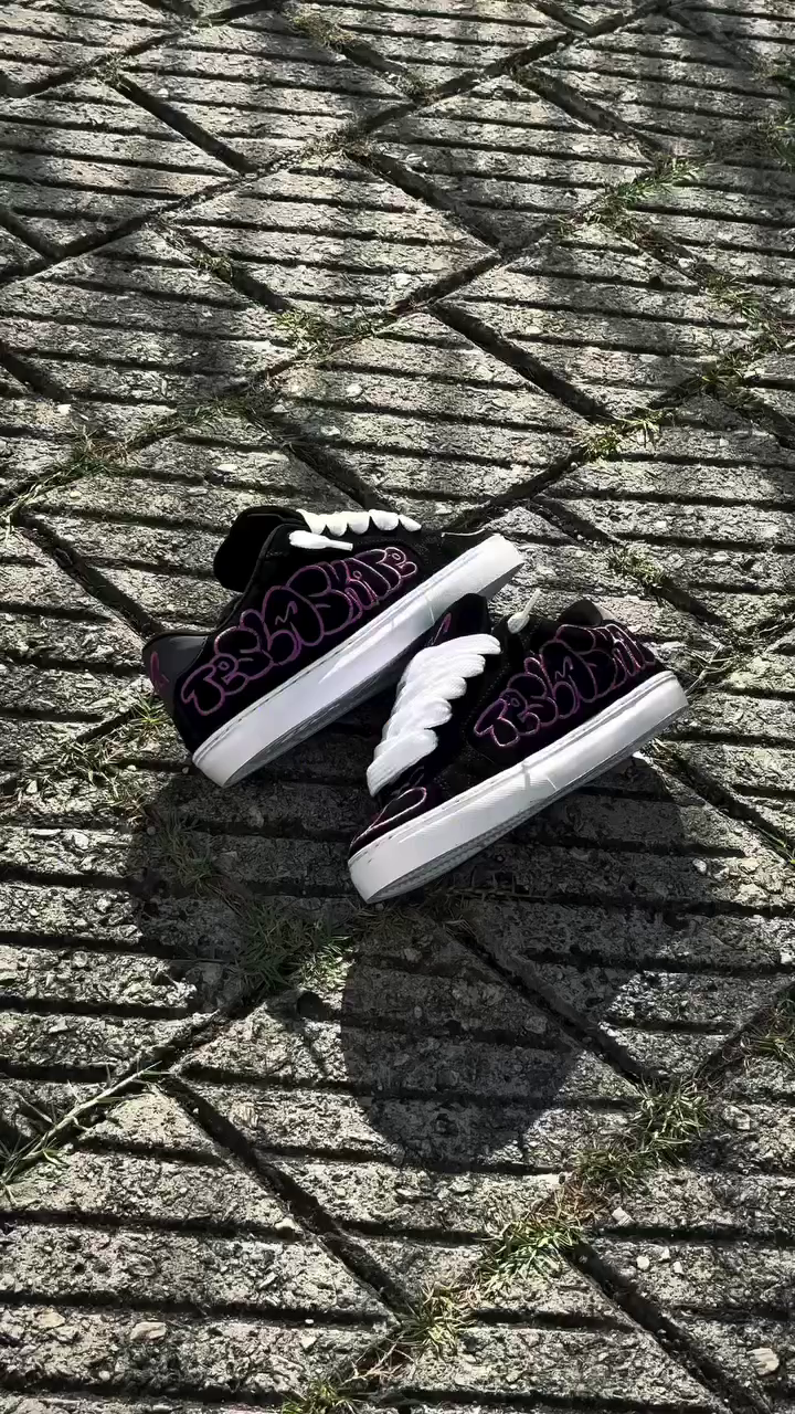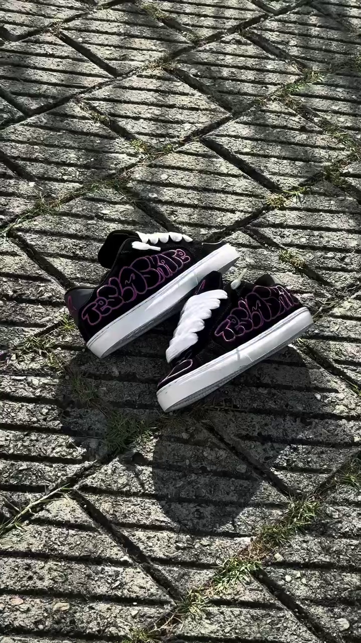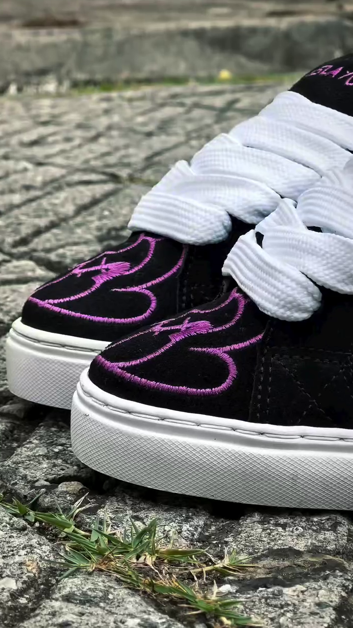 Designed with a premium black upper and eye-catching purple neon scribble detailing, these shoes bring that edgy urban vibe that instantly upgrades your outfit ๐โจ. The thick white flat laces add a bold contrast and make the shoe look even more premium and trendy ๐ฎโ๐จ๐.
