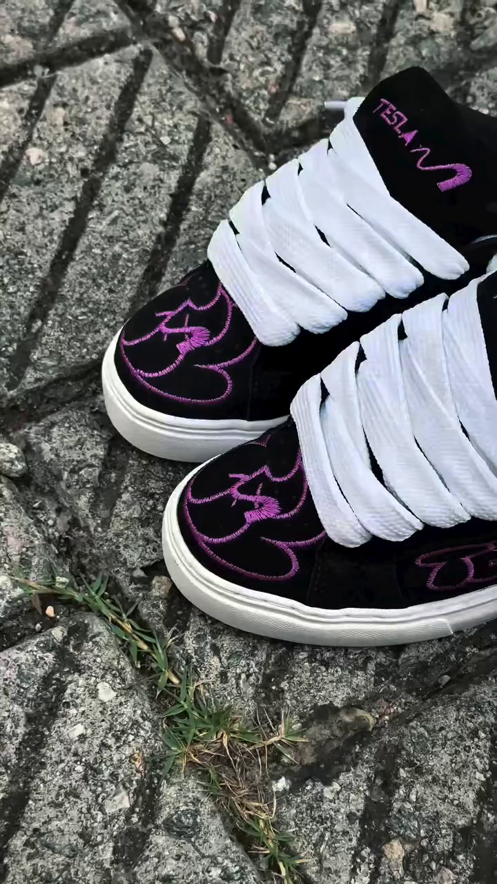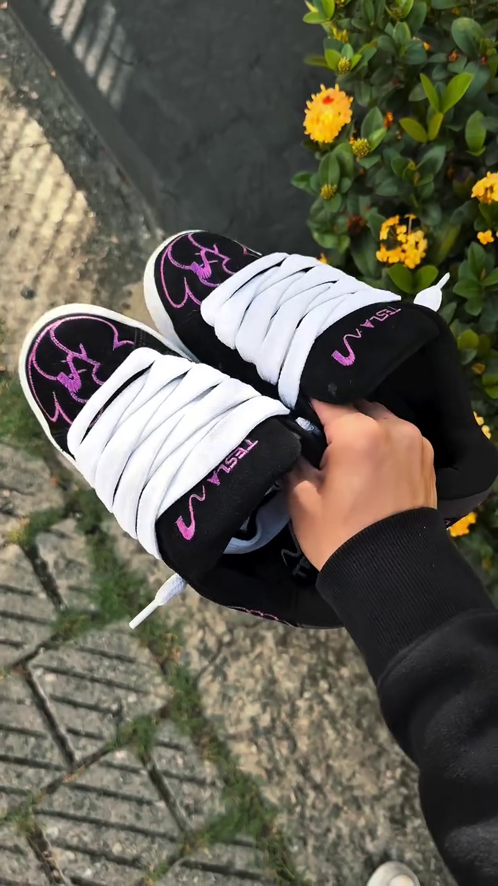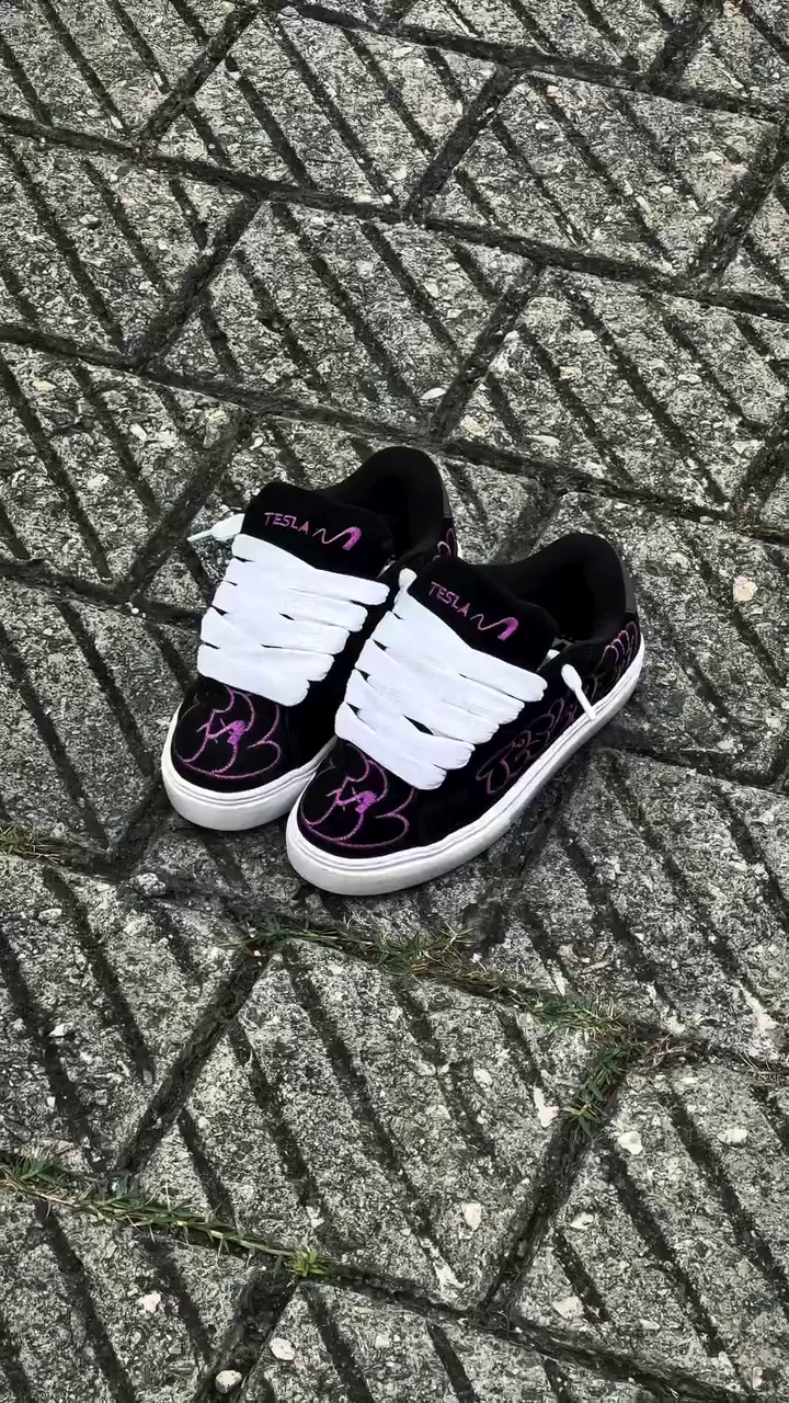 ๐๐ค Tesla Neon Scribble Sneakers โ Black Streetwear Shoes with Glow Vibe ๐โก