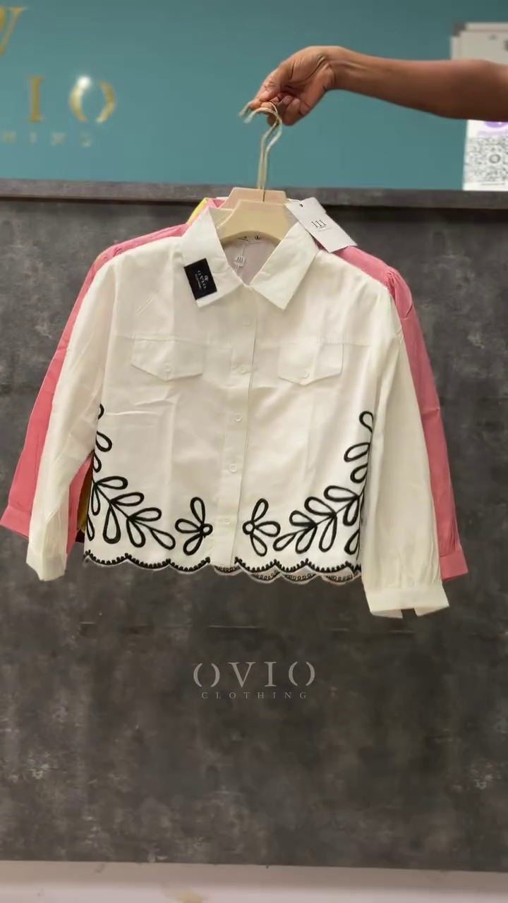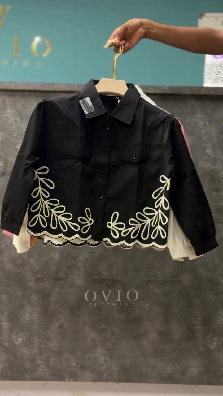 β¨ Step into timeless sophistication with our Luxury Black Embroidered Crop Shirt from the exclusive Ovio Signature Collection. Designed for the modern woman who values class and creativity, this stunning shirt blends minimalist tailoring with artistic embroidery, making it an instant head-turner for any occasion.