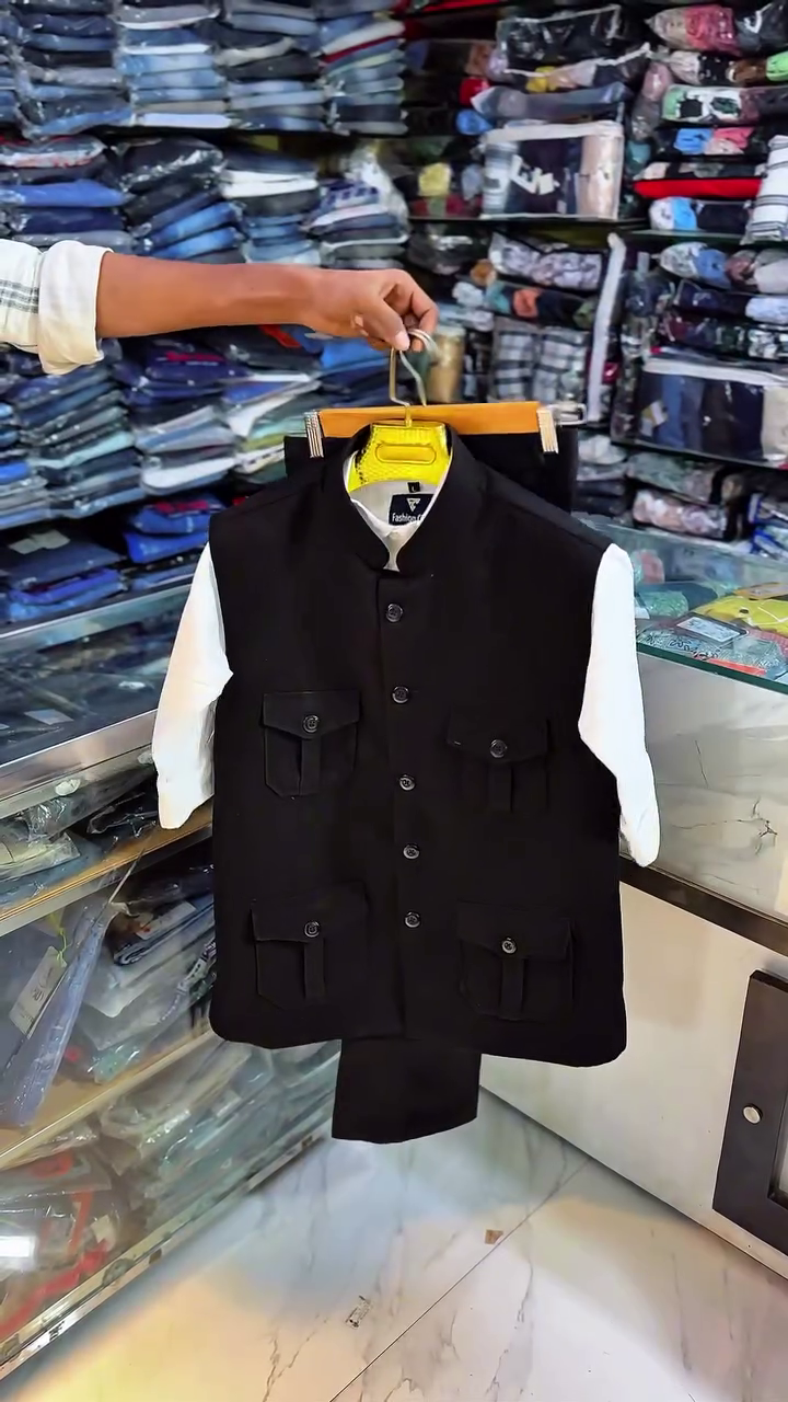 + Free Shippingπ€ Premium Black 4-Pocket Nehru Jacket with Trousers for Men β Sophisticated & Timeless Elegance β¨