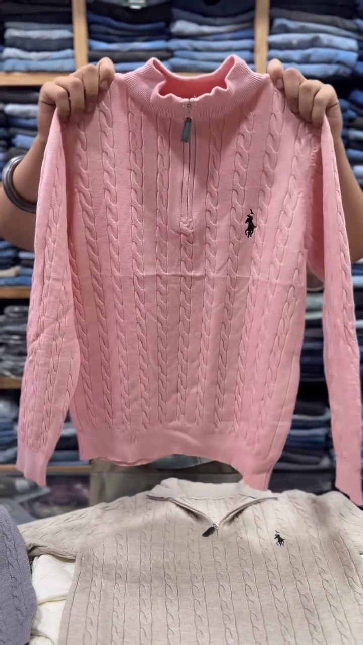 🤍Ultra-Soft Cream Cable-Knit High-Neck Sweater with Half Zipper – Versatile Regular Fit Pullover