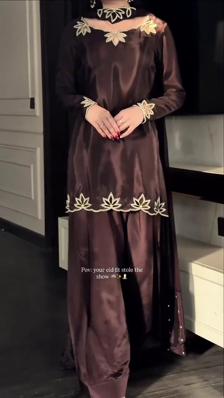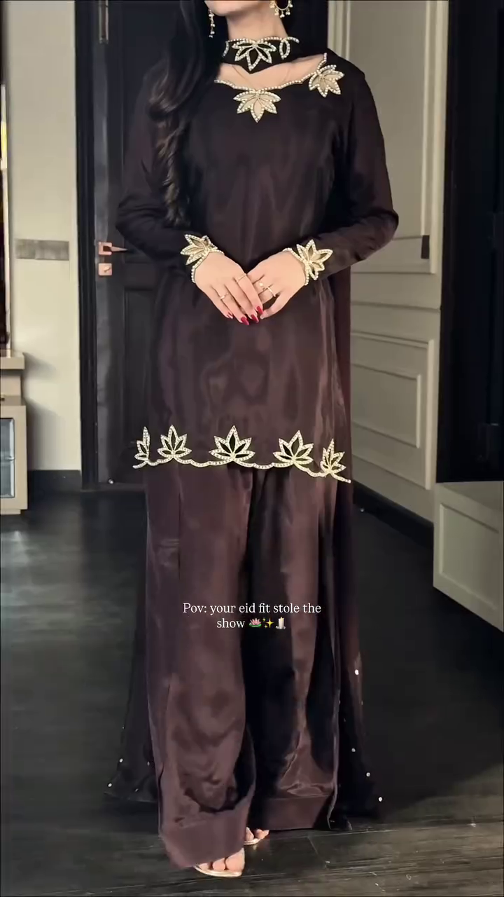 Crafted from natural crepe fabric, this salwar suit offers a soft, smooth texture with a beautiful fall π€. The fabric drapes effortlessly on the body, providing all-day comfort while maintaining a polished, sophisticated look. The rich brown hue adds warmth and depth, making it a versatile color that complements all skin tones and suits both day and evening events π€.