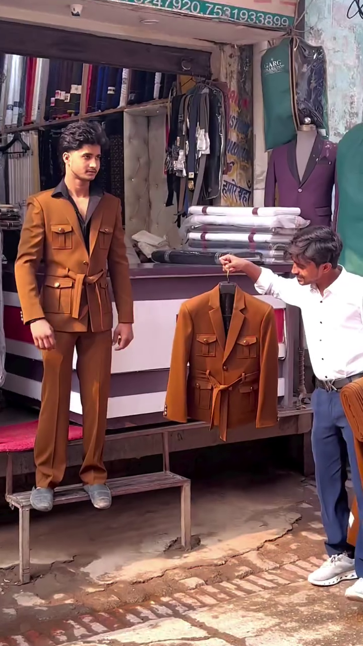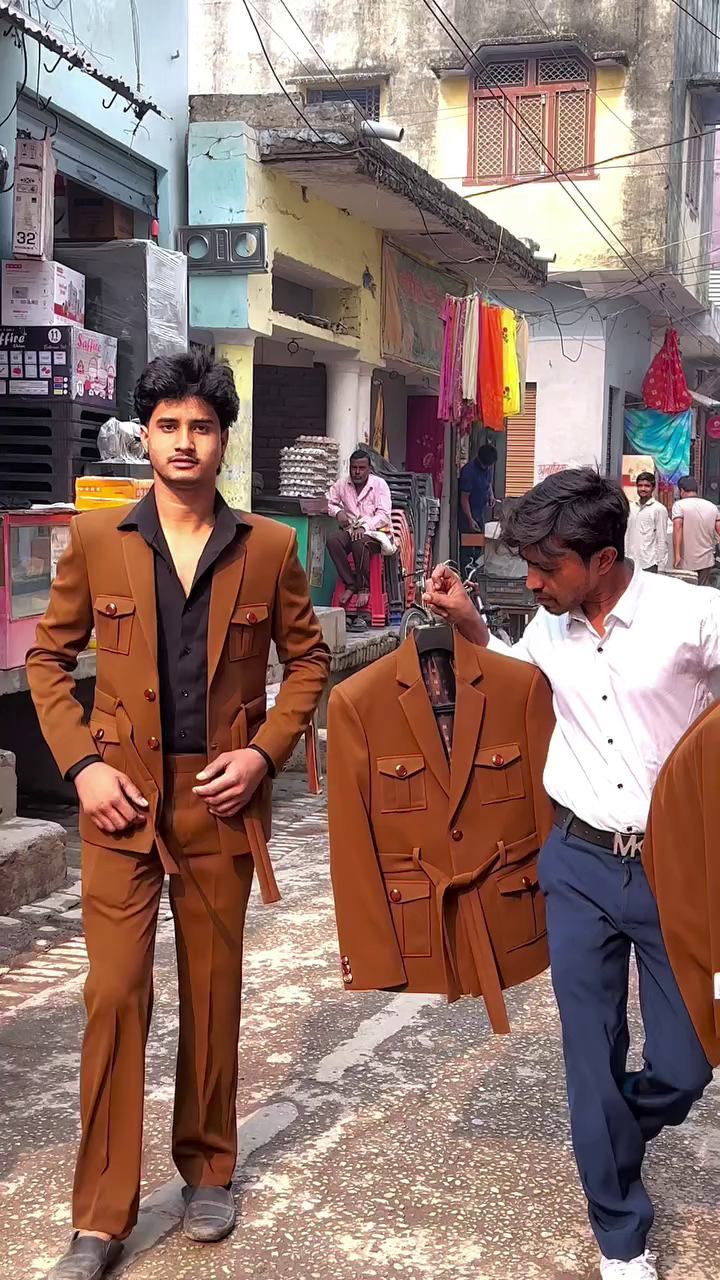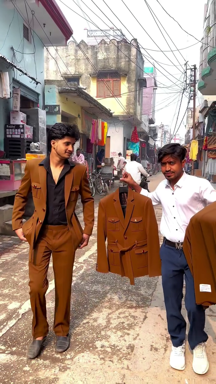 The rich brown tone gives this suit a royal yet modern vibe 🤎, suitable for both daytime and evening occasions. Whether styled with a formal shirt for a classy look or worn open for a bold fashion statement, this suit adapts effortlessly to your styling vision.