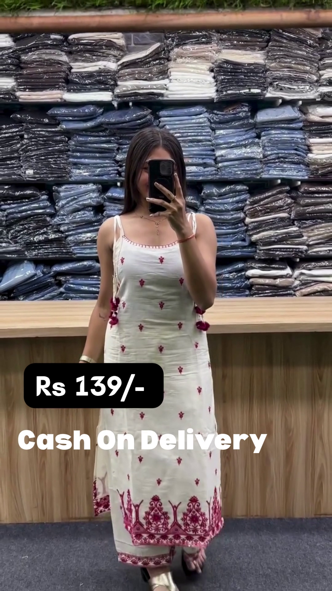 Get ready for an amazing deal! This elegant Embroidered Ethnic Kurta Set is available at the unbelievably low price of Rs 139/-! 🀯 Available in both a white base with maroon embroidery  and a cream/beige base with subtle gold detailing these sets offer high style on a tight budget.