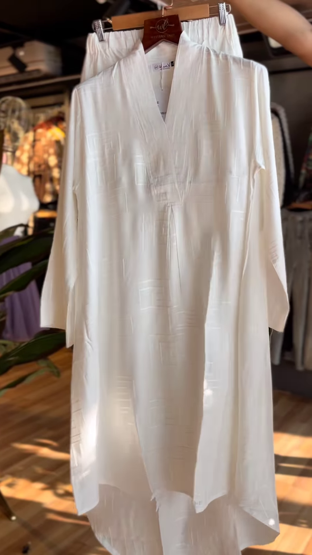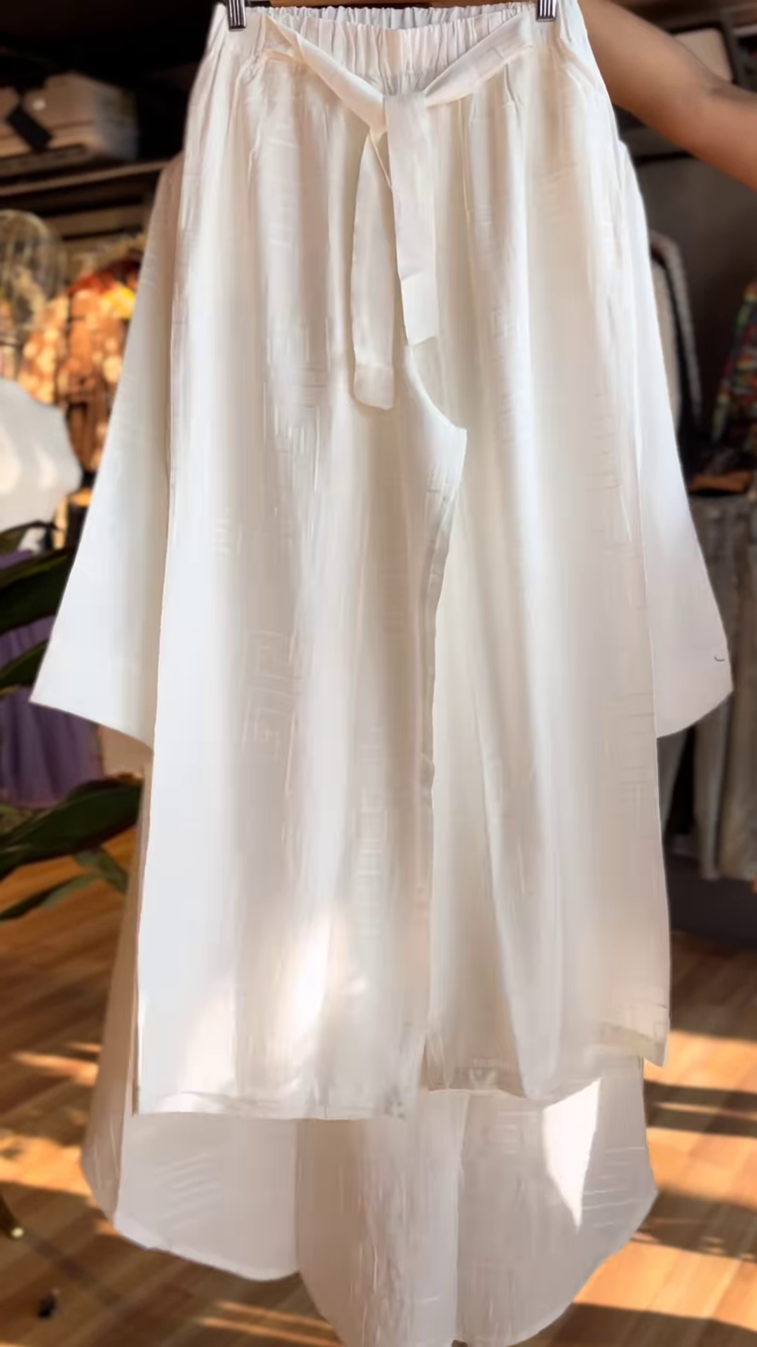 Crafted from a subtly textured fabric that catches the light just right, this outfit speaks volumes without saying a word. The silhouette is relaxed yet refined—perfect for workdays, brunches, or just breezing through summer in style.