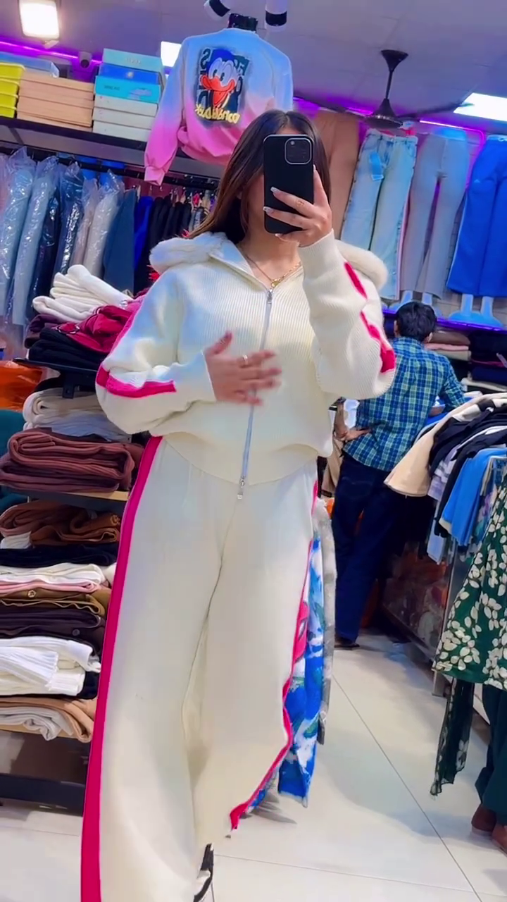 • Feel sporty and trendy with this creamy white knit set, made for all-day active comfort 💖🧶