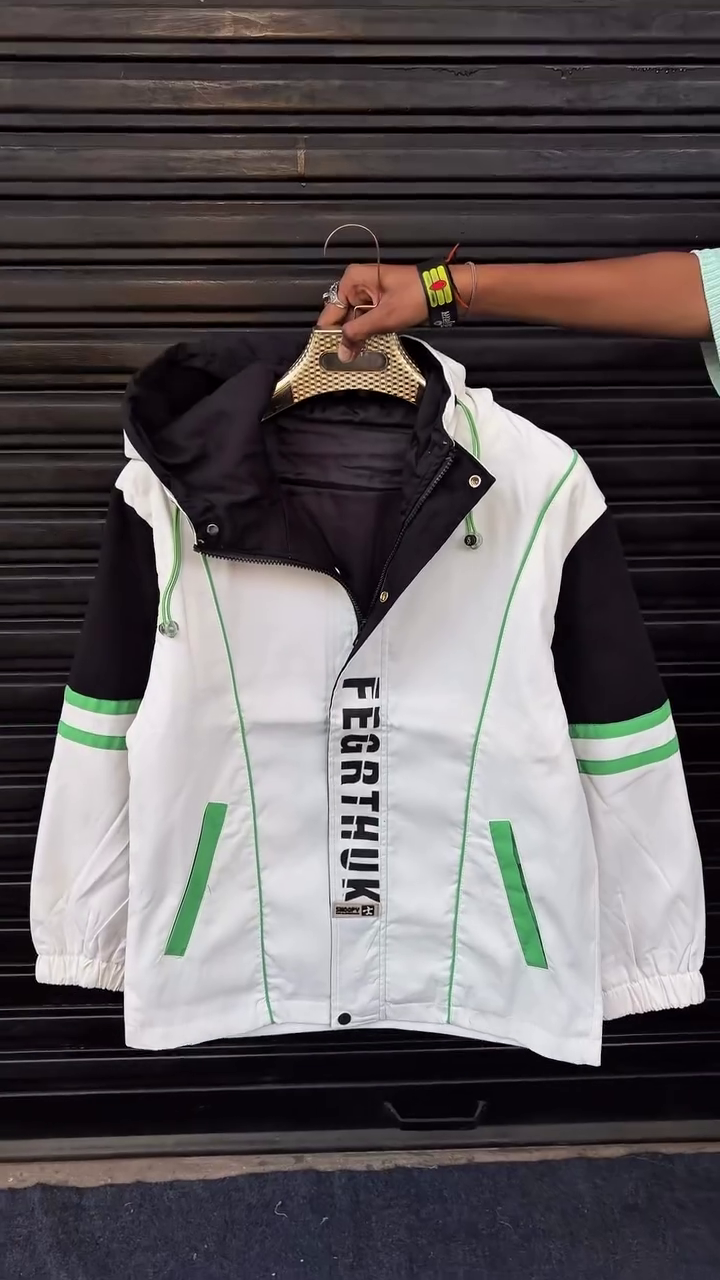 Step up your casual game with our ultra-stylish and versatile “Health” windcheater jacket, designed for those who demand both fashion and functionality. This eye-catching piece features a striking color-block design in a crisp white, vibrant green, and sleek black palette, ensuring you stand out from the crowd wherever you go.